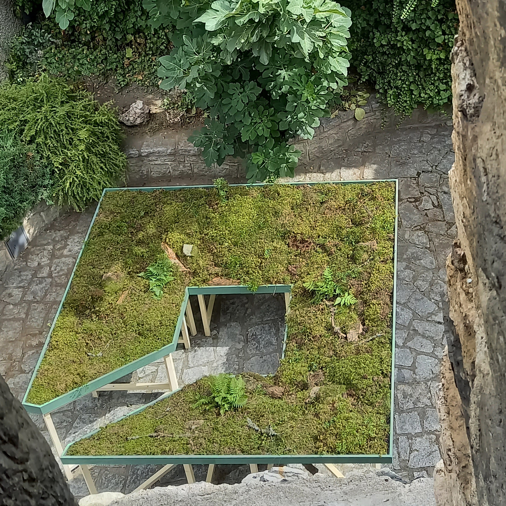 The work is part of an artistic itinerary through the medieval village as part of the LandArt Andorra Biennial. Once the exhibition was over, the vegetation fragment was returned to its original location in the forest. The process was carried out with the support and guidance of the Department of Environment and Forest Management of the Comú de Sant Julià de Lòria, Andorra.