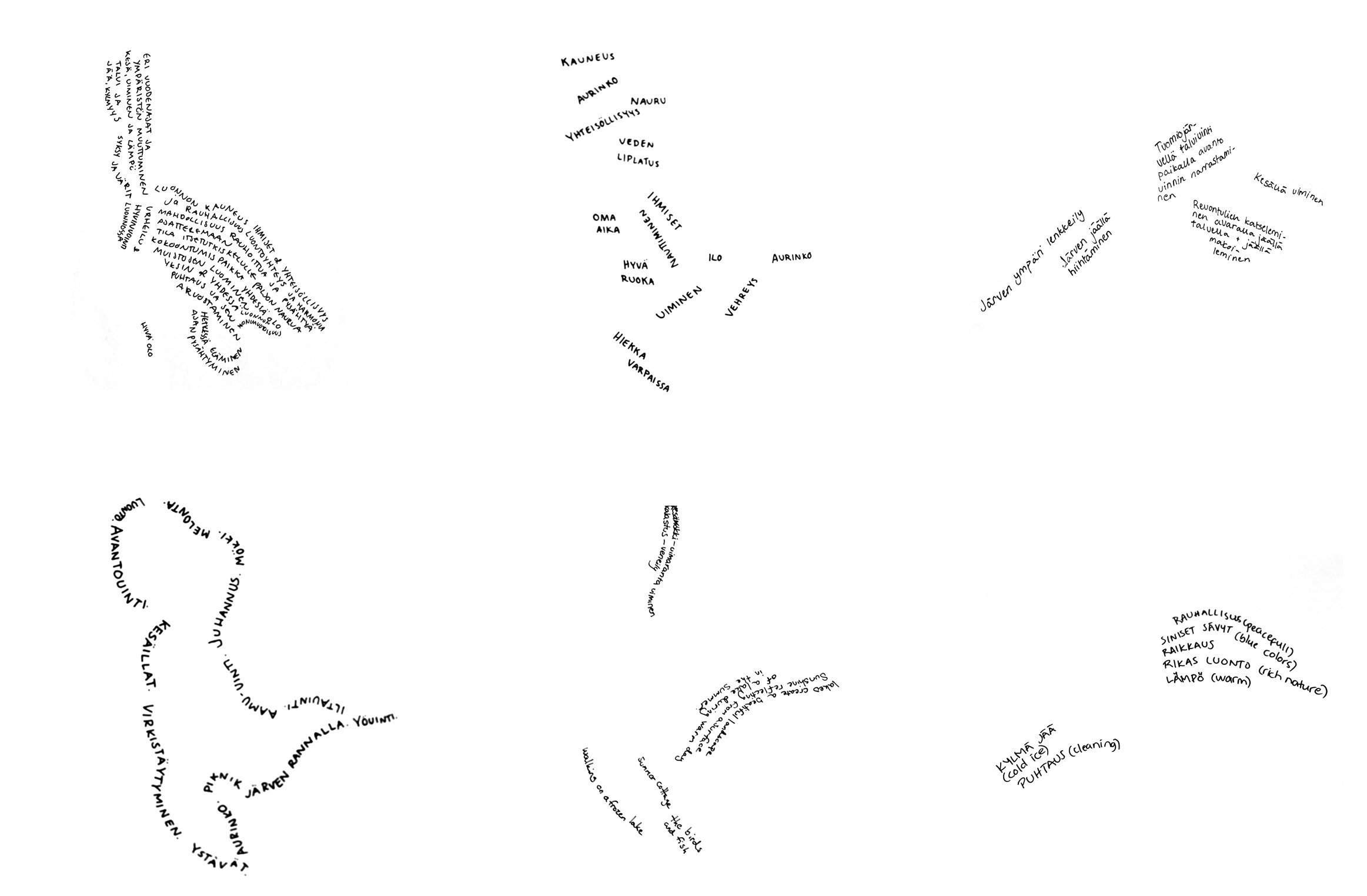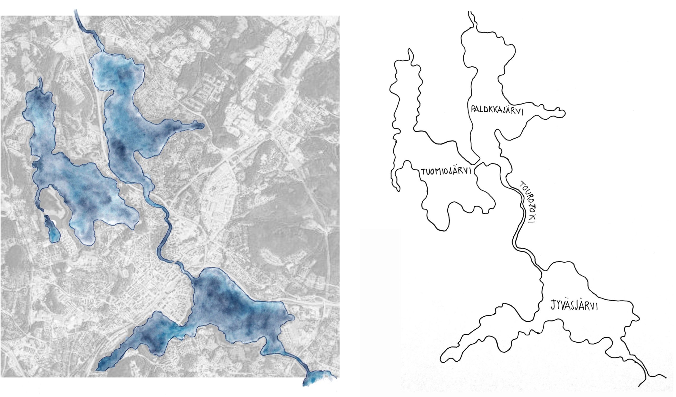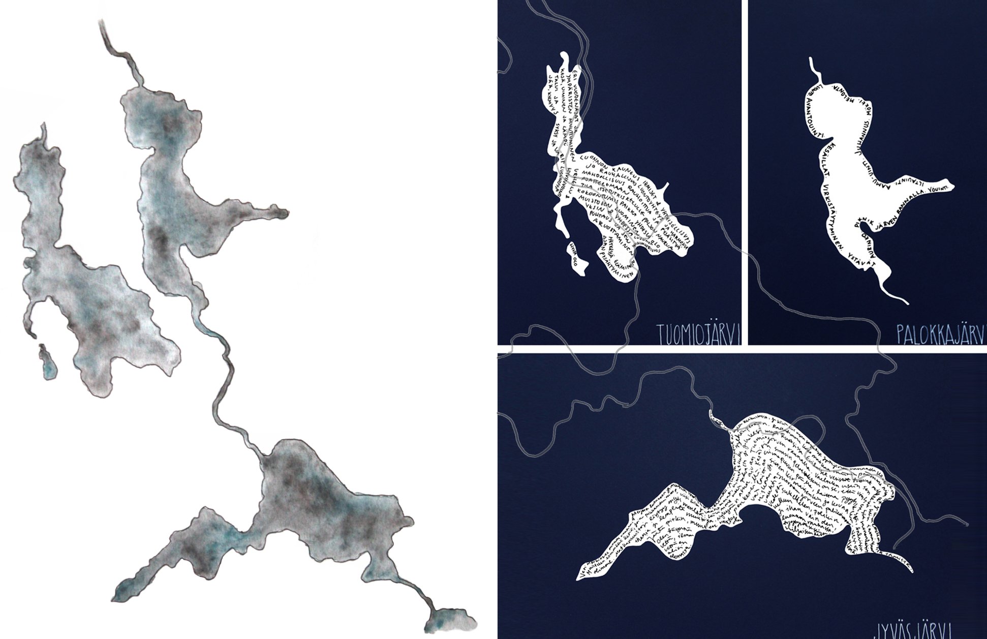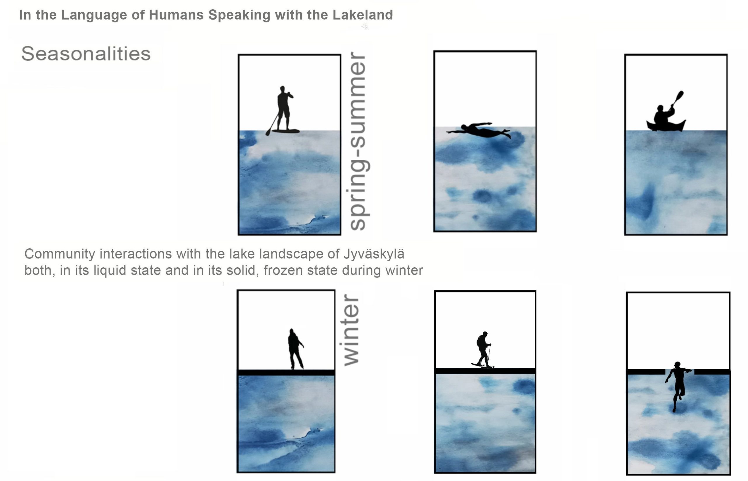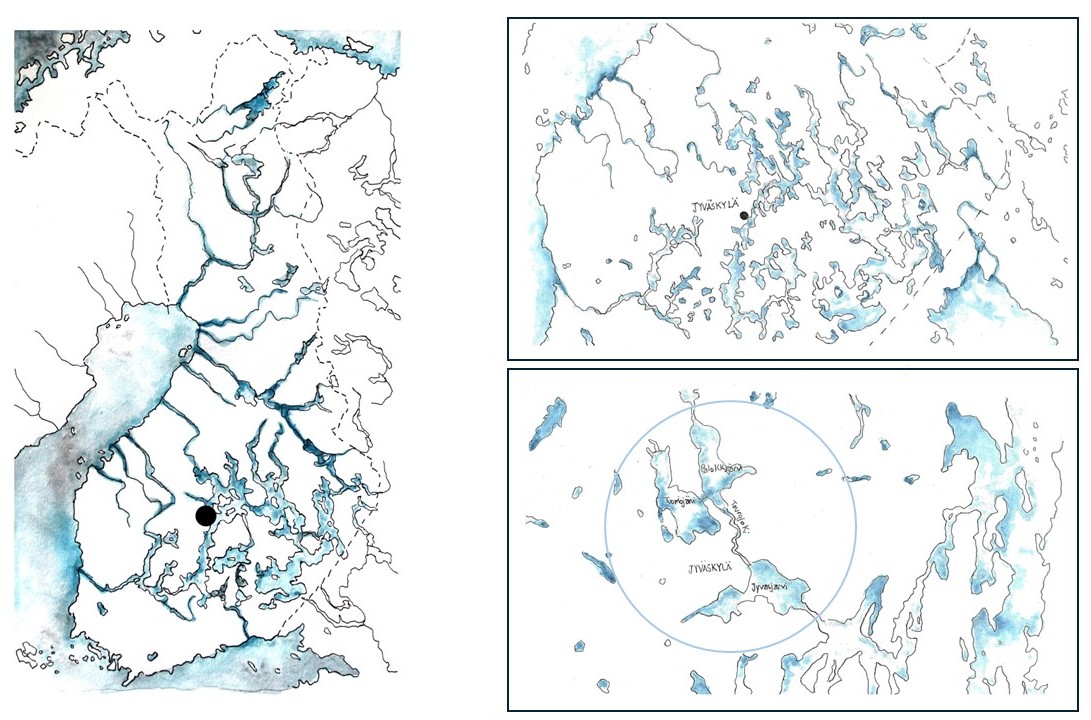 Jyväskylä’s waterscapes form complex and interconnected lake systems that include rivers, wetlands, and shoreline habitats. These dynamic territories are shaped by seasonal cycles and ecological interactions, and support high biodiversity. The lakes and their surrounding landscapes function as living laboratories, providing conceptual and physical frameworks for site-based exploration. By focusing on the lakes as active landscape features, the project proposes the “language of water” as a framework for understanding environmental processes, community engagement, and human-nature relationships.